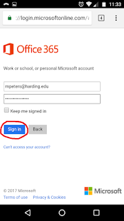 Word should now be setup, last thing necessary is to login. You will be prompted to enter your username. Enter you Harding email here and click the rightward facing arrow. You will then be redirected to a screen similar to what we saw earlier at login.microsoftonline.com. Enter your Pipeline password into the password prompt and then hit 'Sign in'. The app will go through some configuration processes to get itself ready and then you are done! You should now be able to create and edit documents all on your Android device. Have a look around and figure out the ins and outs of the application, or get started on downloading the rest.
